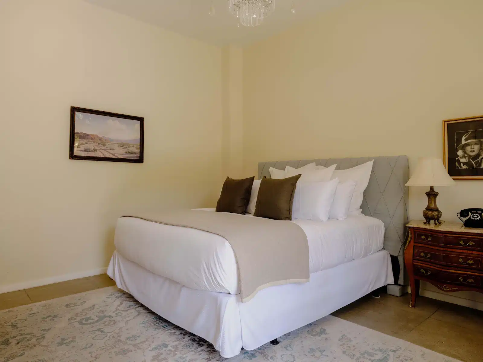 Inside, there are upholstered armchairs and vintage wood furnishings.